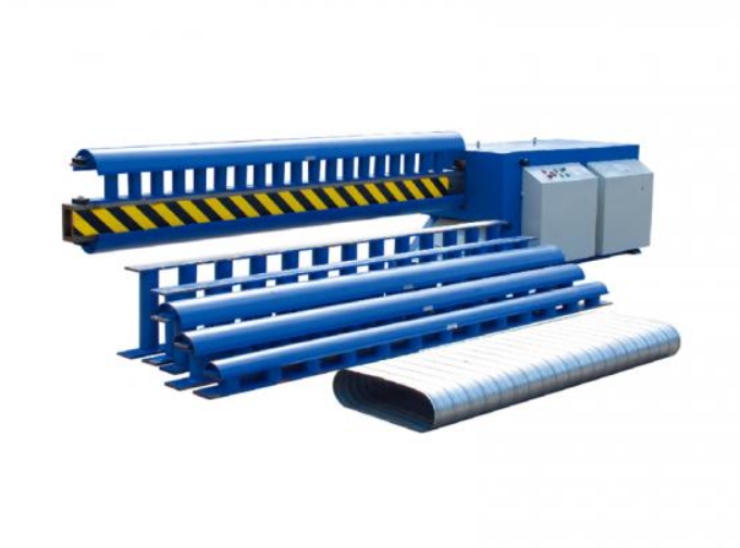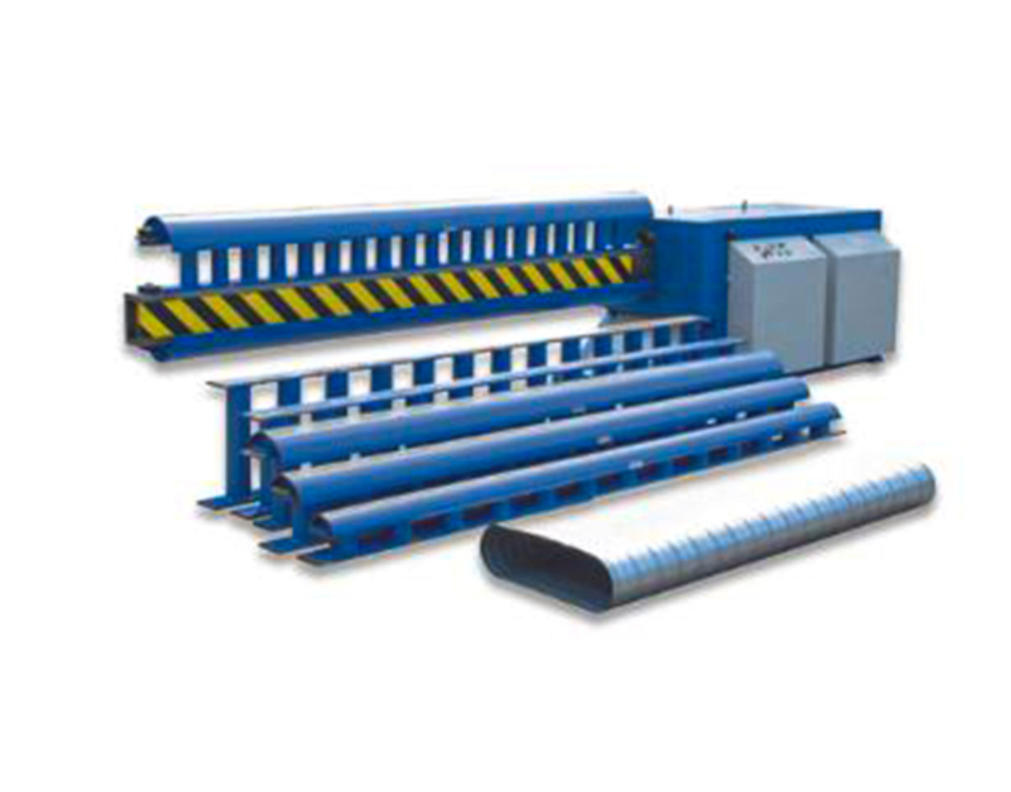 Spiral duct oval machine transforms smooth and corrugated round spiral duct into the Flat-oval duct. Machine control is by PLC, and the LCD UNIT on the operator's panel stores all set parameters for easy recall by the operator when required.